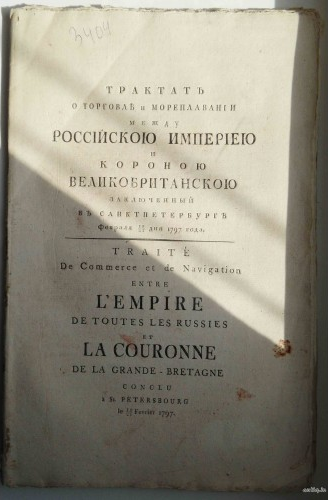 Трактат о торговле и мореплавании между Российскою Империей и Короною Великобританскою заключенный в Санкт-Петербурге февраля 10/21 дня 1797 года.