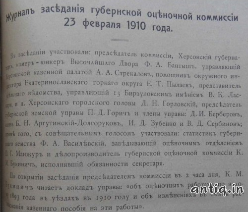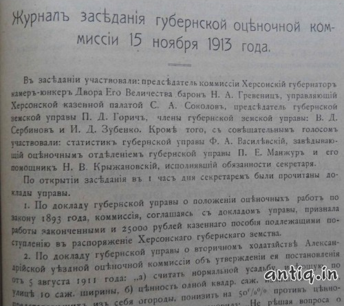 Протоколы губернской оценочной комиссии за 1894-1914 г. Херсонская губернская земская управа.